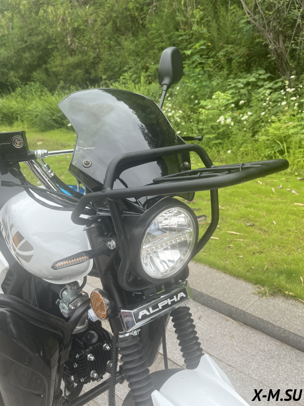 Система багажников сзади позволит перевезти тяжелый груз (хоть по мешку картошки с каждой стороны) без изменения поведения мопеда. Багажник спереди для закрепления небольшого, но важного груза.